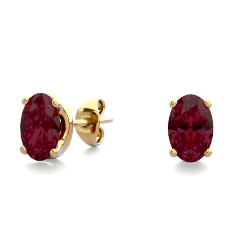 1 Carat Oval Shape Garnet Stud Earrings In 14K Yellow Gold Over Sterling Silver
