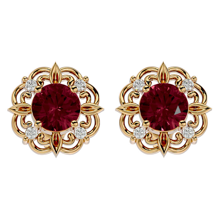 2 1/10 Carat Garnet and Diamond Antique Stud Earrings In 14 Karat Yellow Gold