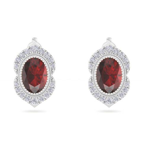 2 1/2 Carat Oval Shape Garnet and Diamond Earrings In 14K White Gold