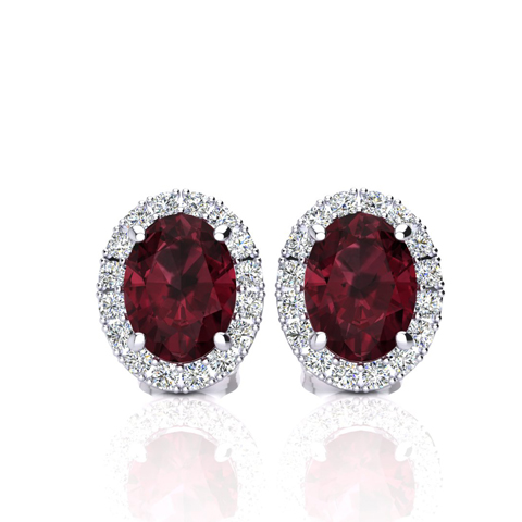 2 1/4 Carat Oval Shape Garnet and Halo Diamond Stud Earrings In 14 Karat White Gold