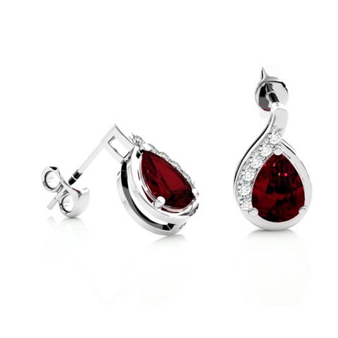 2 Carat Garnet and Diamond Pear Shape Stud Earrings In 14 Karat White Gold