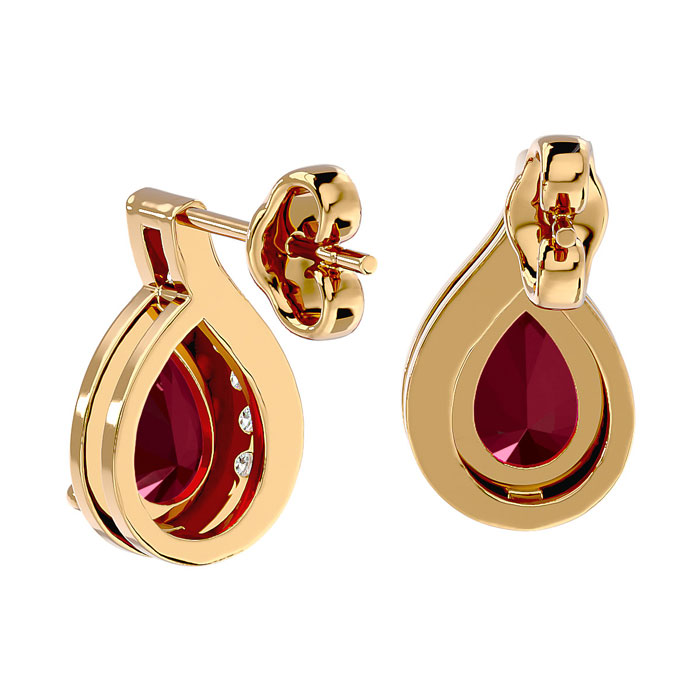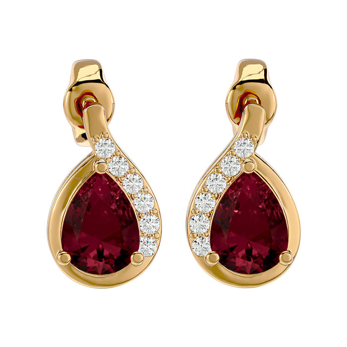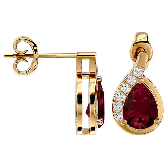 2 Carat Garnet and Diamond Pear Shape Stud Earrings In 14 Karat Yellow Gold