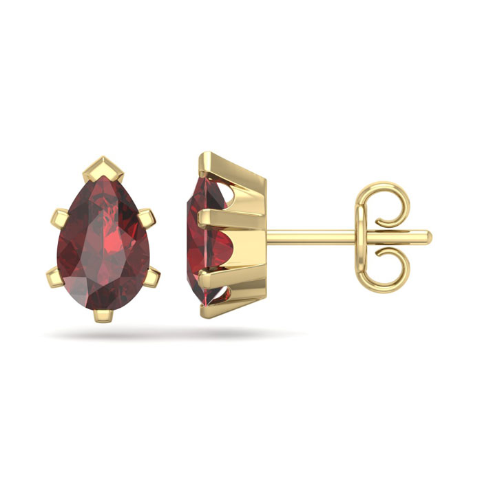 These classic earrings feature two 7x4.5mm pear shape garnet gemstones. Each stone weighs approximately 1 carat, for a total carat weight of approximately 2 carats. These earrings are in 14 karat yellow gold over sterling silver and have comfortable and secure post with friction backs.
