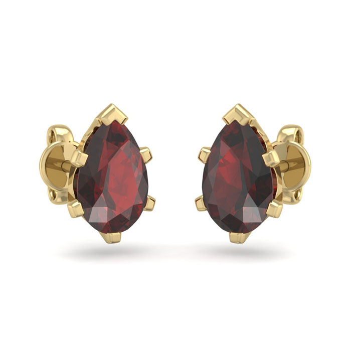 2 Carat Pear Shape Garnet Stud Earrings In 14K Yellow Gold Over Sterling Silver
