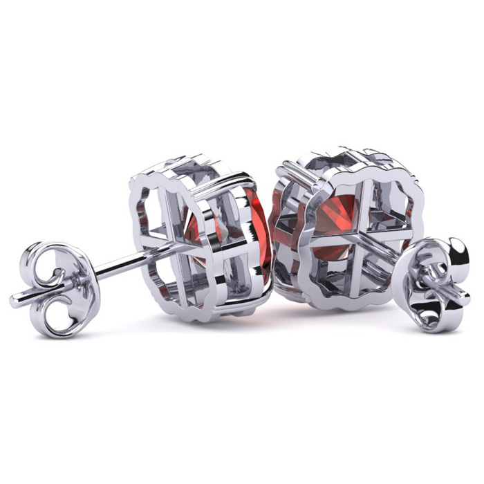 2ct Cushion Cut Garnet and Diamond Earrings in 10k White Gold