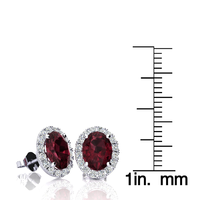 3 1/4 Carat Oval Shape Garnet and Halo Diamond Stud Earrings In 14 Karat White Gold