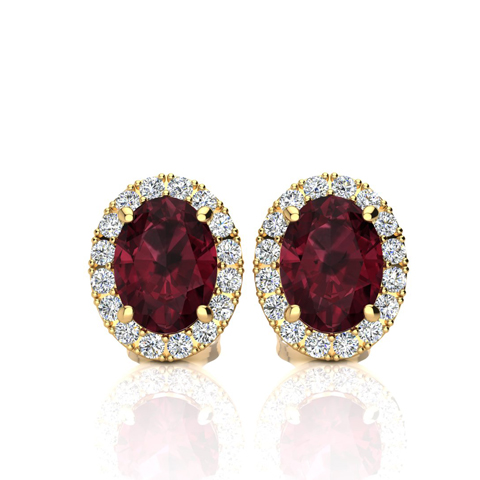 3 1/4 Carat Oval Shape Garnet and Halo Diamond Stud Earrings In 14 Karat Yellow Gold