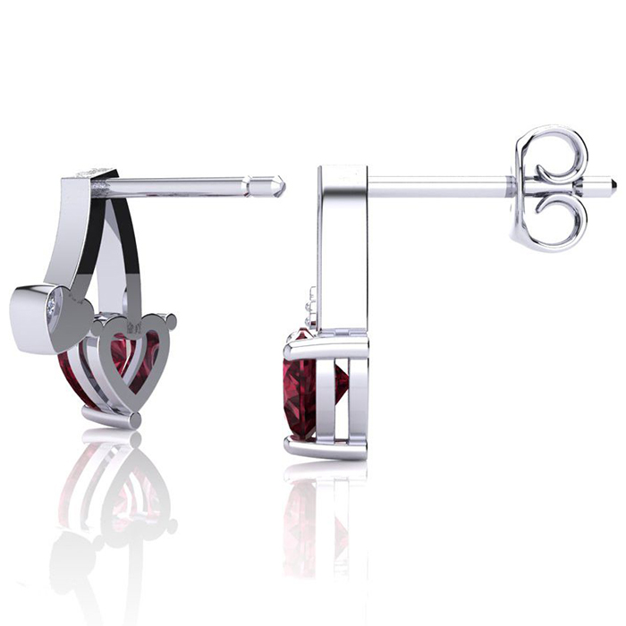 3/4 Carat Garnet and Diamond Heart Earrings In Sterling Silver