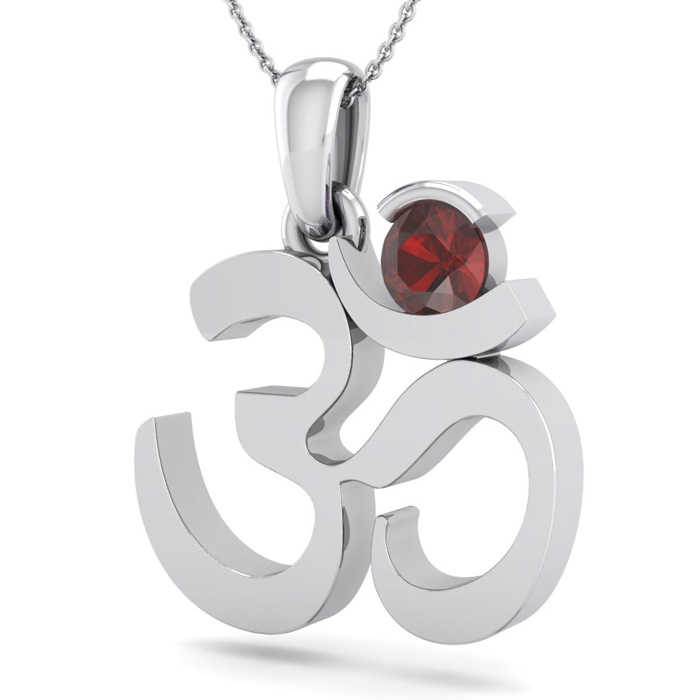 0.40 Carat Garnet Om Necklace In 14 Karat White Gold, 18 Inches