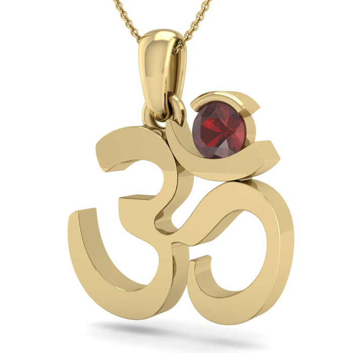0.40 Carat Garnet Om Necklace In 14 Karat Yellow Gold, 18 Inches