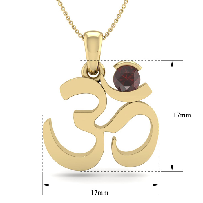 Retrograde Birthstones™ 0.40 Carat Garnet Om Necklace In 14 Karat Yellow Gold, 18 Inches