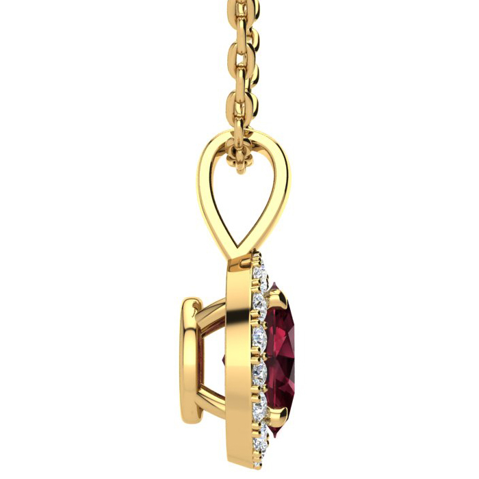 0.62 Carat Oval Shape Garnet and Halo Diamond Necklace In 14 Karat Yellow Gold With 18 Inch Chain
