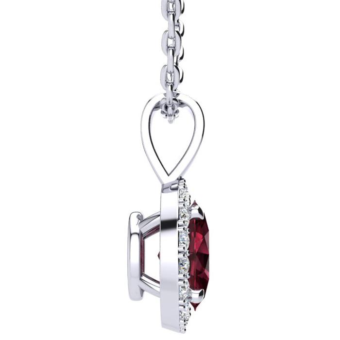 1 1/2 Carat Oval Shape Garnet and Halo Diamond Necklace In 14 Karat White Gold With 18 Inch Chain