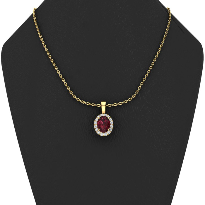 1 1/2 Carat Oval Shape Garnet and Halo Diamond Necklace In 14 Karat Yellow Gold With 18 Inch Chain