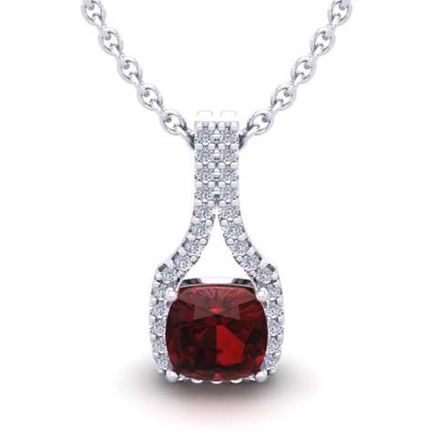 1 1/3 Carat Cushion Cut Garnet and Classic Halo Diamond Necklace In 14 Karat White Gold, 18 Inches