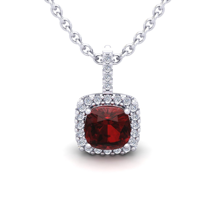 1 1/4 Carat Cushion Cut Garnet and Halo Diamond Necklace In 14 Karat White Gold, 18 Inches