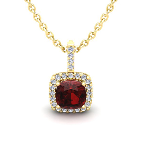 1 1/4 Carat Cushion Cut Garnet and Halo Diamond Necklace In 14 Karat Yellow Gold, 18 Inches