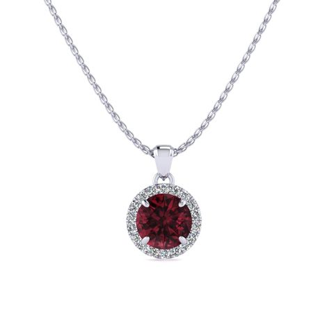1 1/4 Carat Round Shape Garnet and Halo Diamond Necklace In 14 Karat White Gold