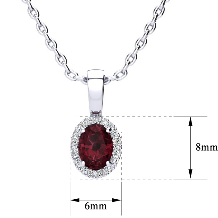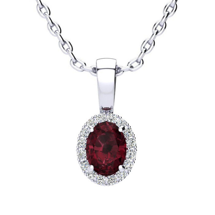 1/2 Carat Oval Shape Garnet and Halo Diamond Necklace In Sterling Silver With 18 Inch Chain