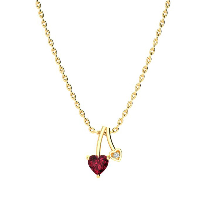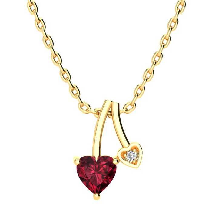 1/2ct Heart Shaped Garnet and Diamond Necklace in 10k Yellow Gold