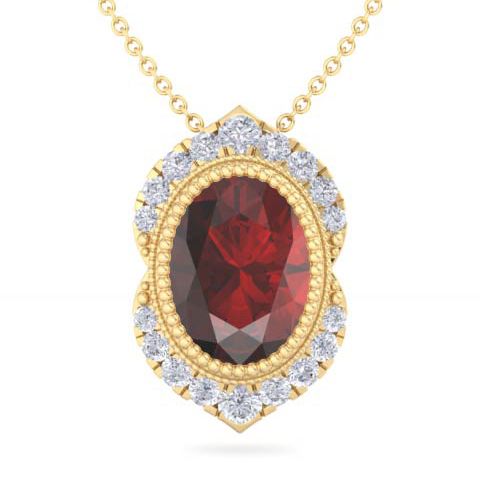 1 3/4 Carat Oval Shape Garnet and Diamond Necklace In 14K Yellow Gold