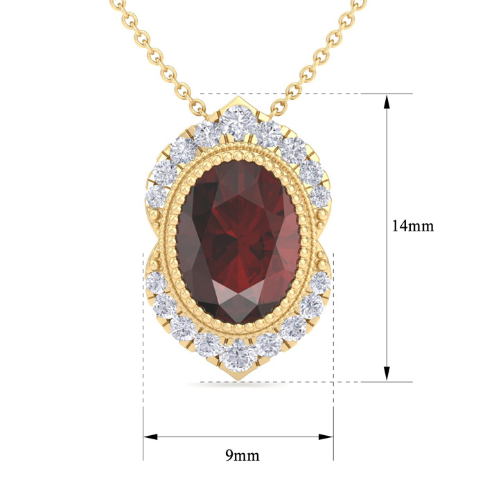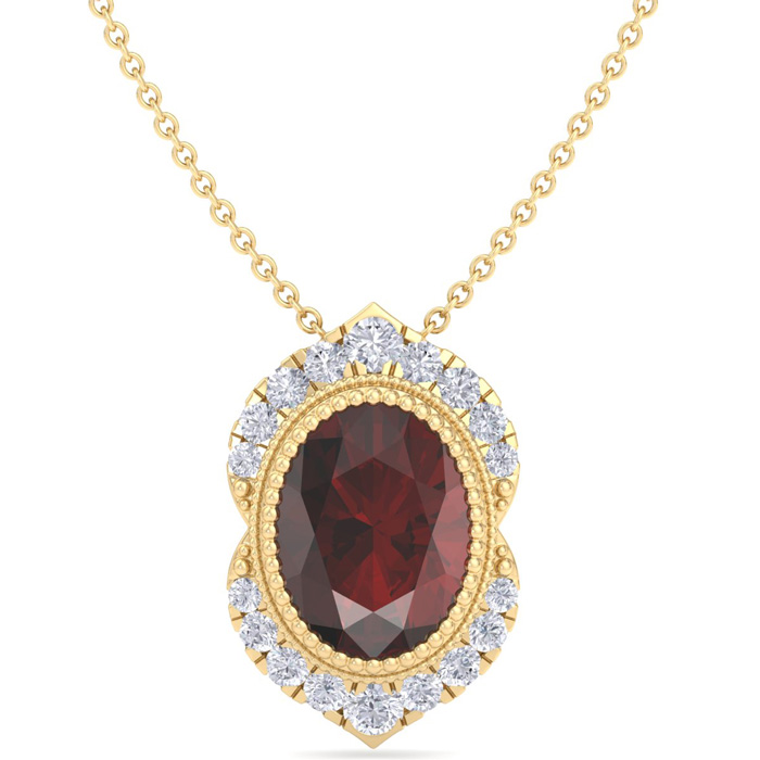 Retrograde Birthstones™ 1 3/4 Carat Oval Shape Garnet and Diamond Necklace In 14K Yellow Gold