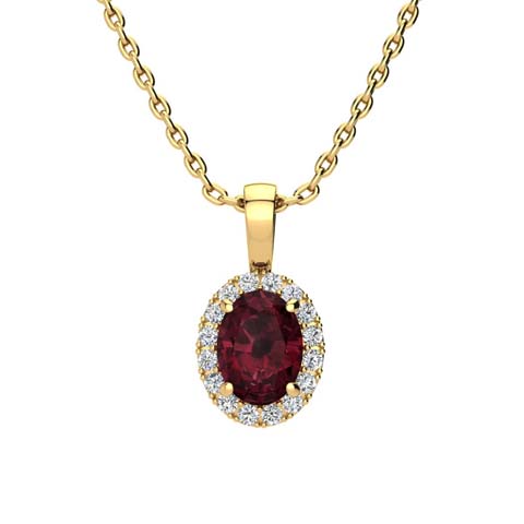 1 Carat Oval Shape Garnet and Halo Diamond Necklace In 14 Karat Yellow Gold With 18 Inch Chain