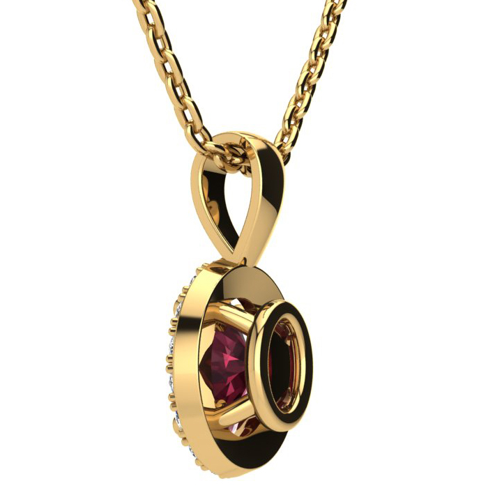 1 Carat Oval Shape Garnet and Halo Diamond Necklace In 14 Karat Yellow Gold With 18 Inch Chain
