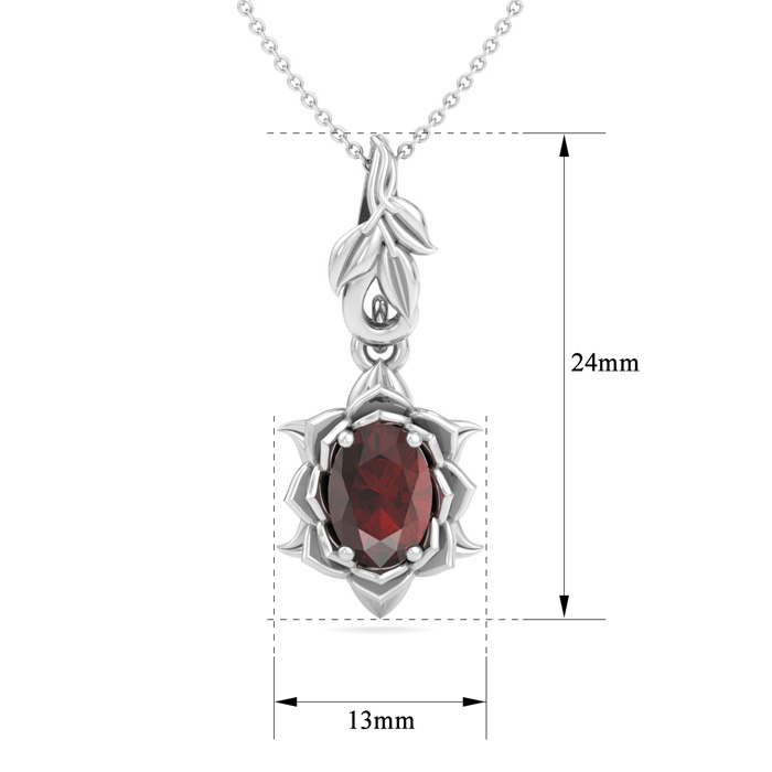 1 Carat Oval Shape Garnet Ornate Necklace In 14K White Gold