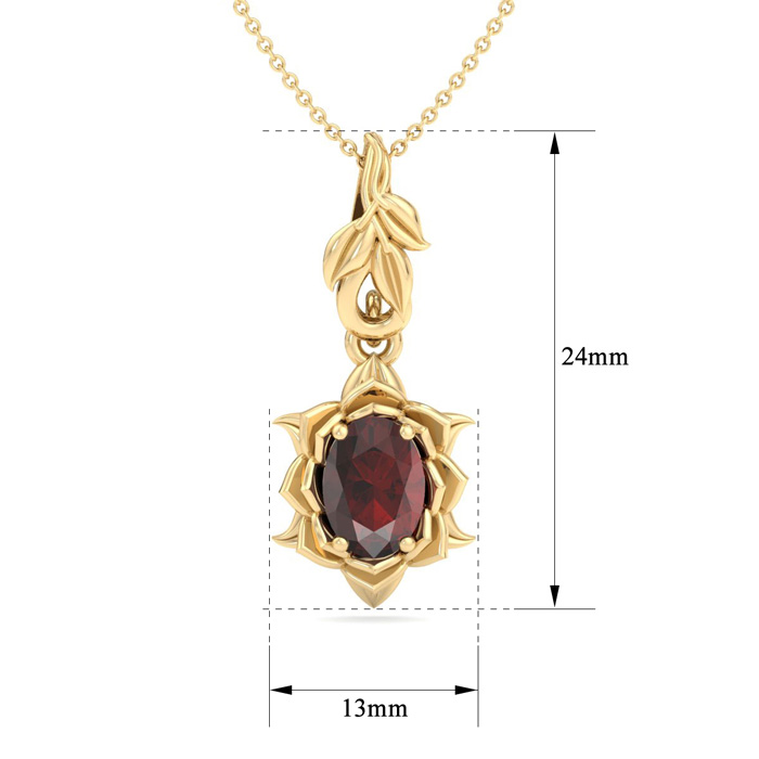 Retrograde Birthstones™ 1 Carat Oval Shape Garnet Ornate Necklace In 14K Yellow Gold