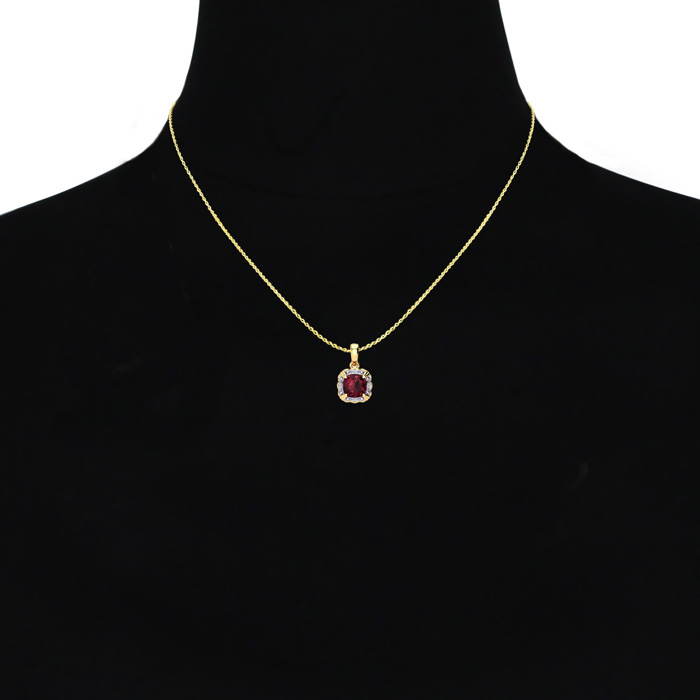 Estate Jewelry 2 1/2ct Cushion Cut Garnet and Diamond Necklace In 10K Yellow Gold
