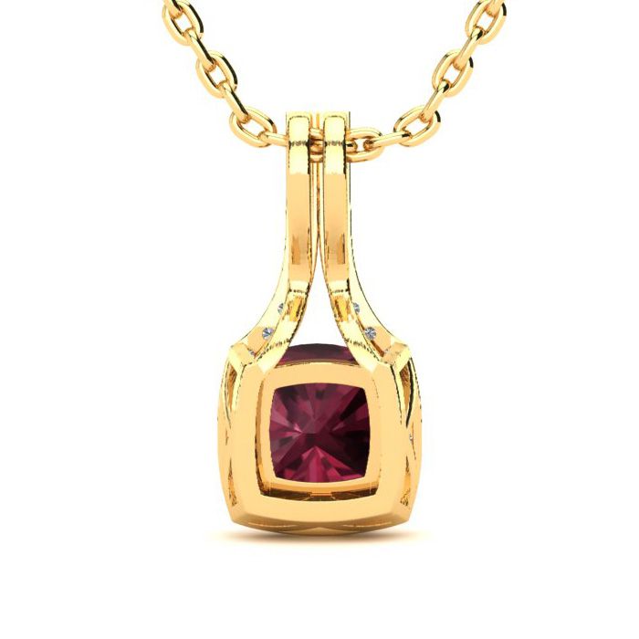 2 Carat Cushion Cut Garnet and Classic Halo Diamond Necklace In 14 Karat Yellow Gold, 18 Inches