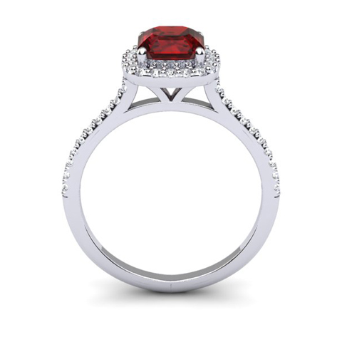 1 1/2 Carat Cushion Cut Garnet and Halo Diamond Ring In 14K White Gold
