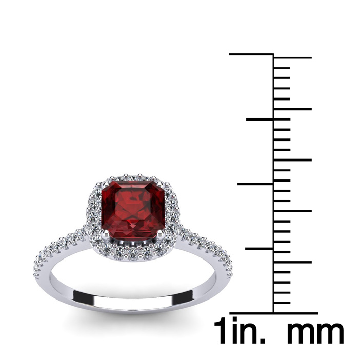 1 1/2 Carat Cushion Cut Garnet and Halo Diamond Ring In 14K White Gold