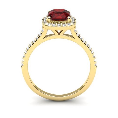 1 1/2 Carat Cushion Cut Garnet and Halo Diamond Ring In 14K Yellow Gold