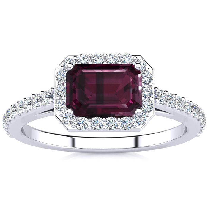 1 1/2 Carat Garnet and Halo Diamond Ring In 14 Karat White Gold