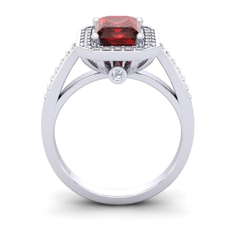 1 1/2 Carat Garnet and Halo Diamond Ring In 14 Karat White Gold