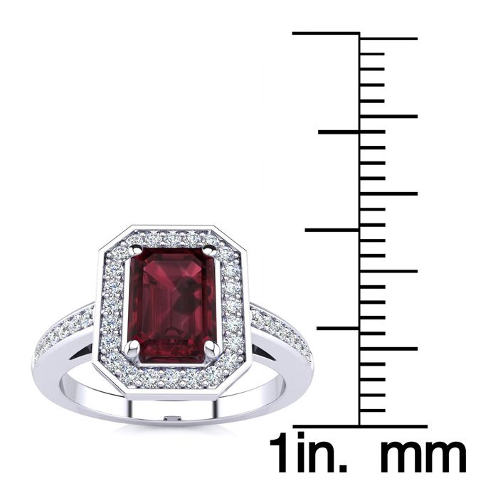 1 1/2 Carat Garnet and Halo Diamond Ring In 14 Karat White Gold