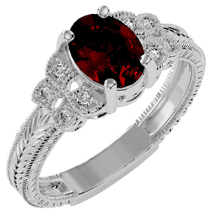 1 1/2 Carat Oval Shape Garnet and Diamond Ring In 10 Karat White Gold