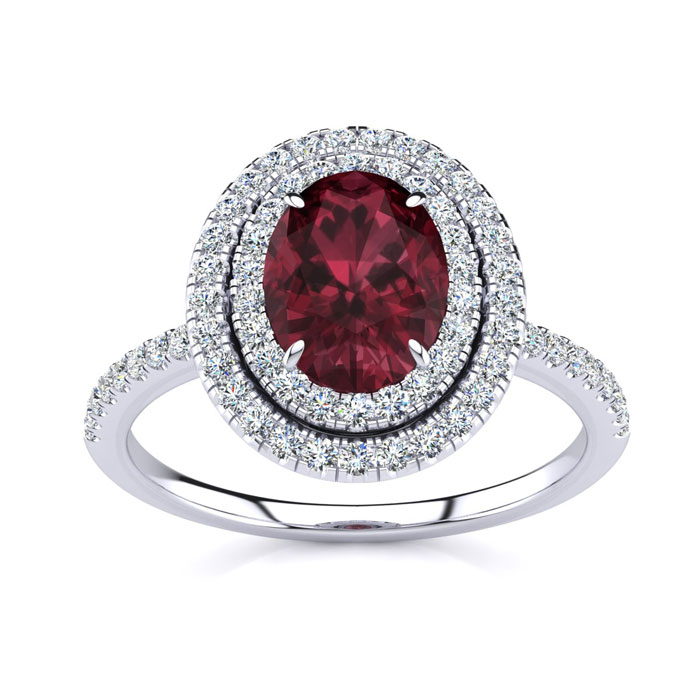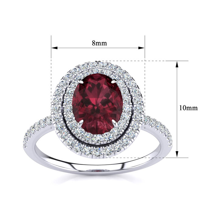 1 1/2 Carat Oval Shape Garnet and Double Halo Diamond Ring In Sterling Silver