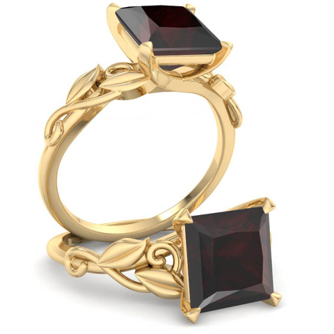 1 1/2 Carat Princess Shape Garnet Ornate Ring In 14K Yellow Gold