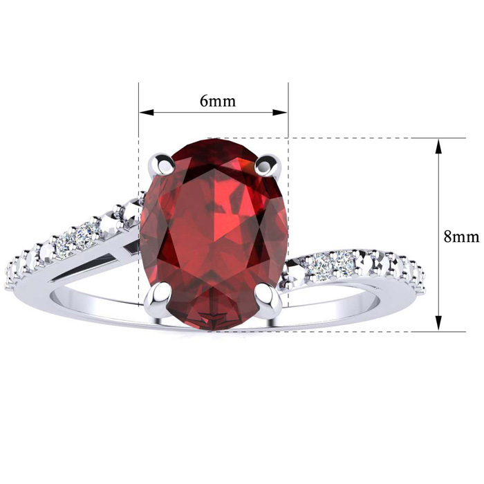 1 1/2ct Oval Shape Garnet and Diamond Ring in 10k White Gold