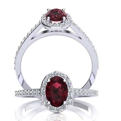 1 1/3 Carat Oval Shape Garnet and Halo Diamond Ring In 14 Karat White Gold