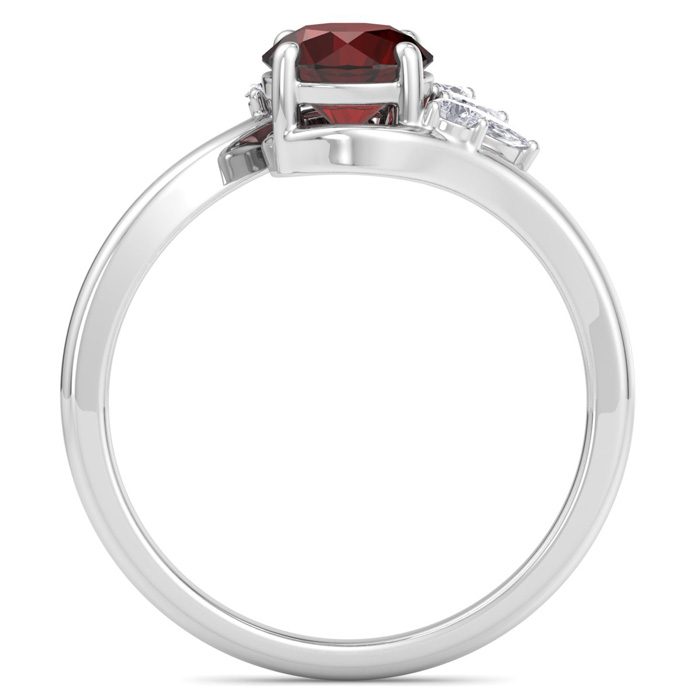 Retrograde Birthstones™ 1 1/4 Carat Garnet and Marquise Crown Halo Diamond Ring In 14K White Gold