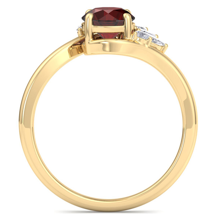 Retrograde Birthstones™ 1 1/4 Carat Garnet and Marquise Crown Halo Diamond Ring In 14K Yellow Gold