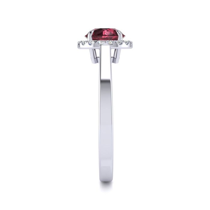 1 1/4 Carat Round Shape Garnet and Halo Diamond Ring In 14 Karat White Gold
