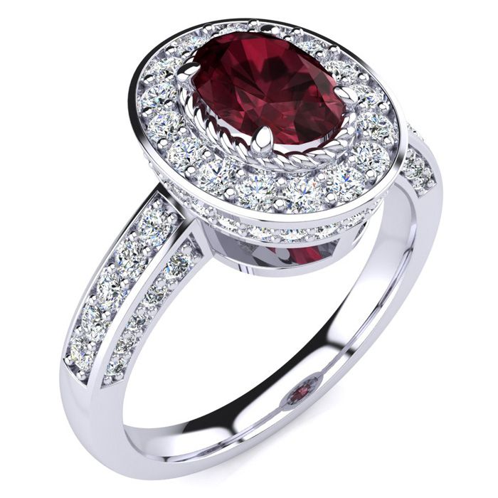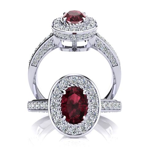 1 2/3 Carat Oval Shape Garnet and Halo Diamond Ring In 14 Karat White Gold