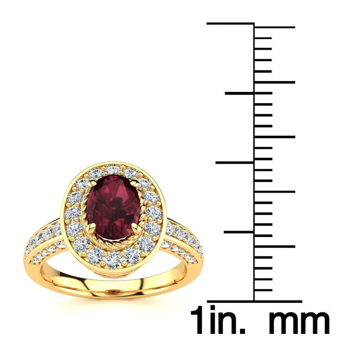1 2/3 Carat Oval Shape Garnet and Halo Diamond Ring In 14 Karat Yellow Gold