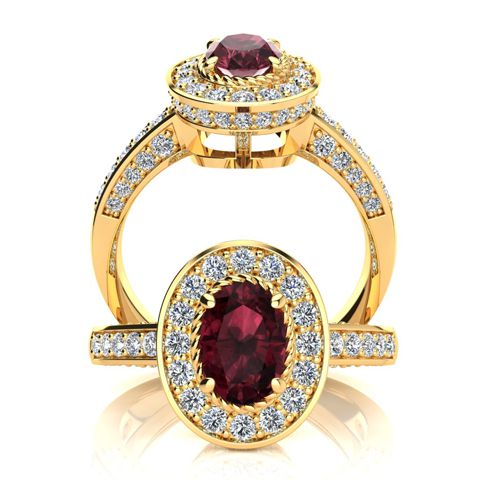 1 2/3 Carat Oval Shape Garnet and Halo Diamond Ring In 14 Karat Yellow Gold