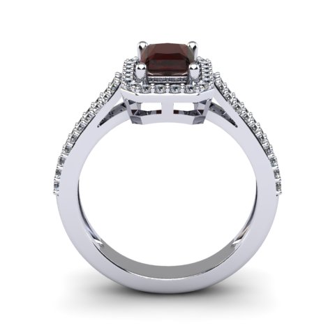 1 3/4 Carat Garnet and Halo Diamond Ring In 14 Karat White Gold